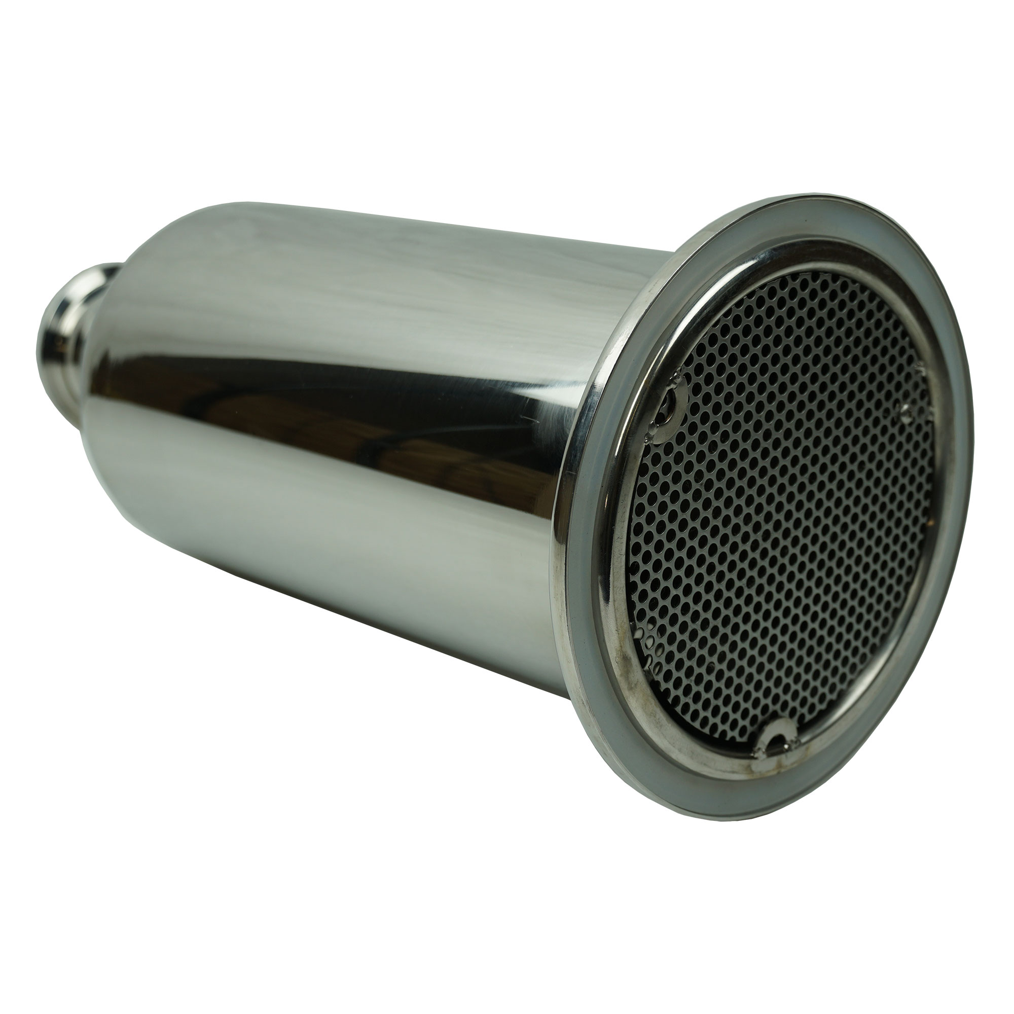 We weld washers into the bottom portion of this basket to allow a screen made of stainless steel mesh to hold botanicals in the basket when in use, and quickly come out after unscrewing to put botanicals in. The other side of the basket has another screened mesh and a 3″ opening for additional distilling parts