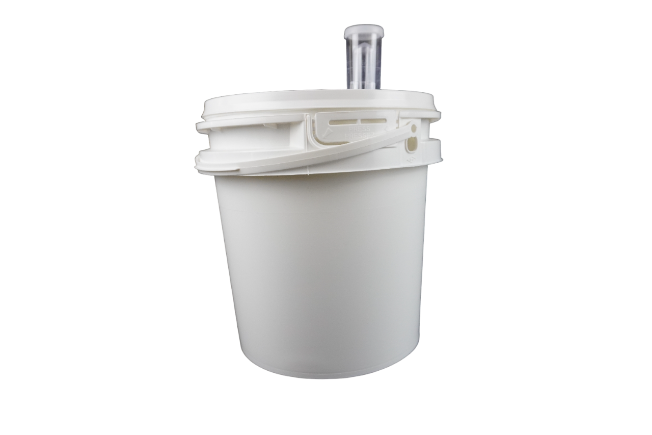 Bucket made of food grade, chemical resistant PP plastic. Includes airlock