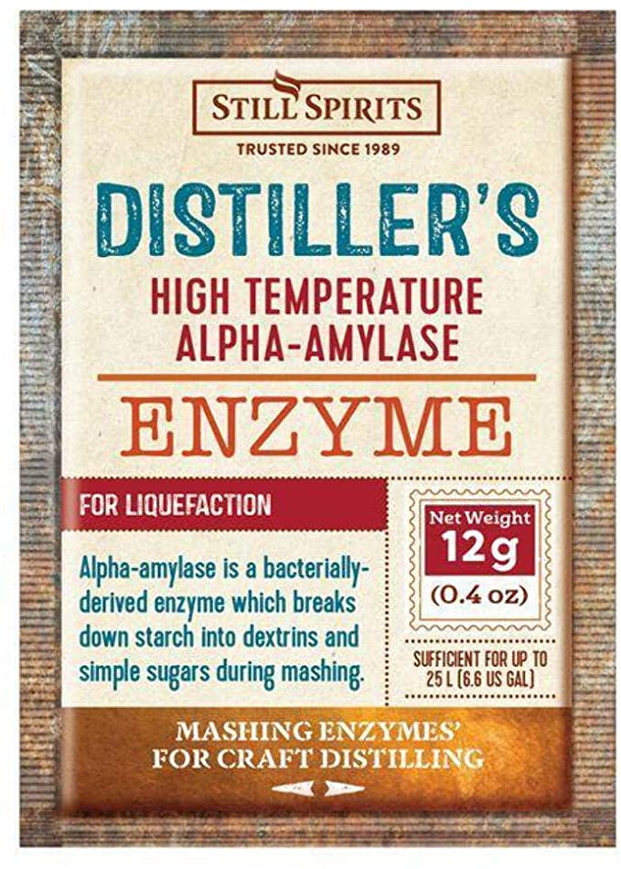 Distiller’s Alpha-Amylase Enzyme is used for converting gelatinized starches to sugars in fuits, grains and other starchy ingredients. The enzyme works by breaking down dextrins and other simple sugars before beginning a saccharification process for conversion.