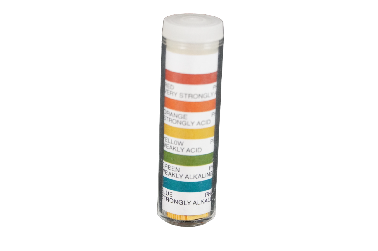 pH testing strips. 100 strips per bag, range 1 to 14. Easy to use paper pH test strips.